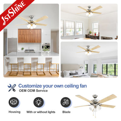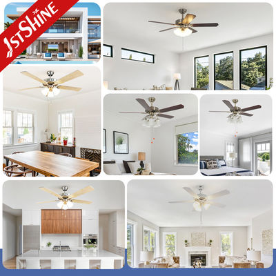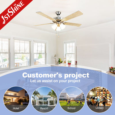 فنر سقف ریترو در حال رشد است 5 تیغه چوبی طبیعی 5 چراغ زنجیره کشیدن سنتی