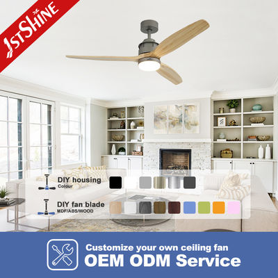 52 اینچ Bldc ریموت لود پنکه سقف 3 تیغه چوب طبیعی جامد
