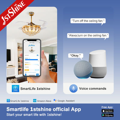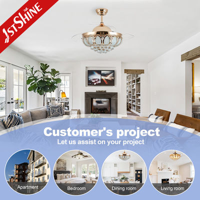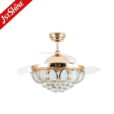 چراغ فن سقفی جمع شونده کریستالی 42 اینچی تیغه فلزی مسی ABS