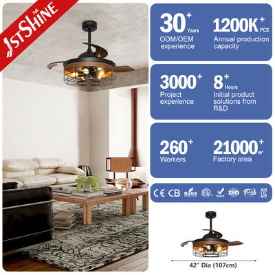 این فن سقفی سبک صنعتی قرن 18 را با طراحی و فناوری قرن 21 ترکیب می کند. دارای سایه قفس، 3 تیغه قابل باز کردن، 3 چراغ چرخش و دارای کنترل از راه دور است.فن سقف حرکت هوا را با عملکرد بسیار آرام انجام می دهد.