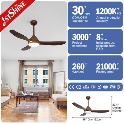 48 اینچ فنر سقف پلاستیکی LED چوب دانه رنگ تیغه دی سی موتور