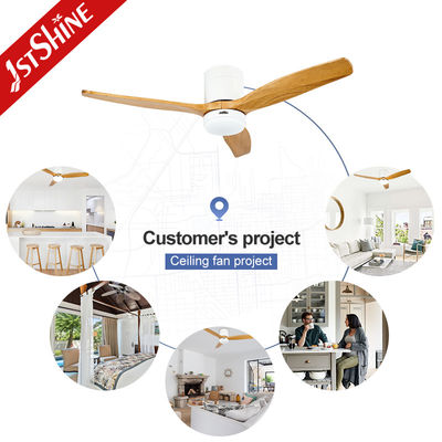 پنکه سقفی هوشمند با نصب همسطح با 3 پره چوبی طبیعی و چراغ LED