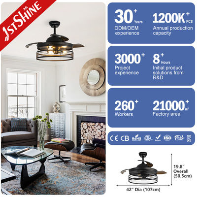 پنکه سقفی نامرئی 42 اینچی Farmhouse با چراغ برای اتاق خواب