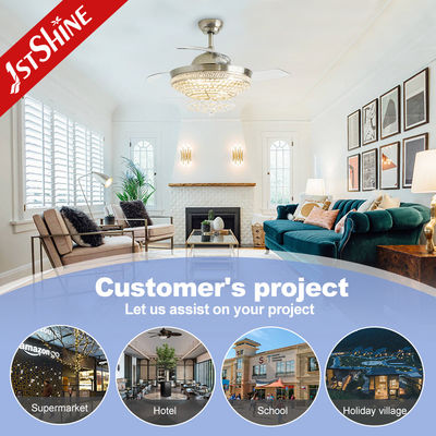 6. ساخت مواد برتر: ساخته شده از فلز با کیفیت بالا، آکریلیک و کریستال، این فن سقف تضمین دوام و طول عمر.ترکیب مواد نه تنها جذابیت زیبایی آن را افزایش می دهد بلکه یکپارچگی ساختاری آن را نیز تضمین می کند.